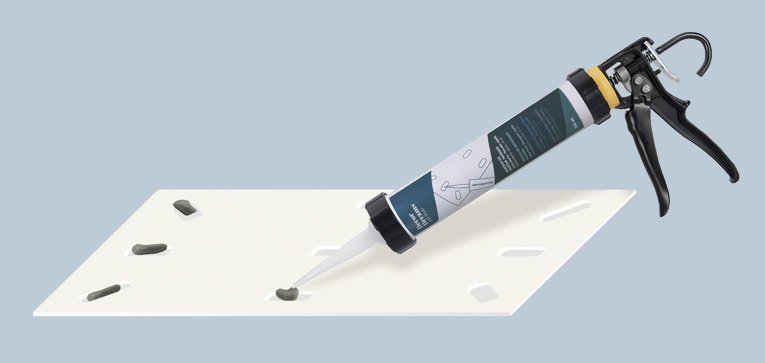 Alkalmazása a panel hátoldalán, az öntapadós Techno Fix habon kialakított lyukakban.