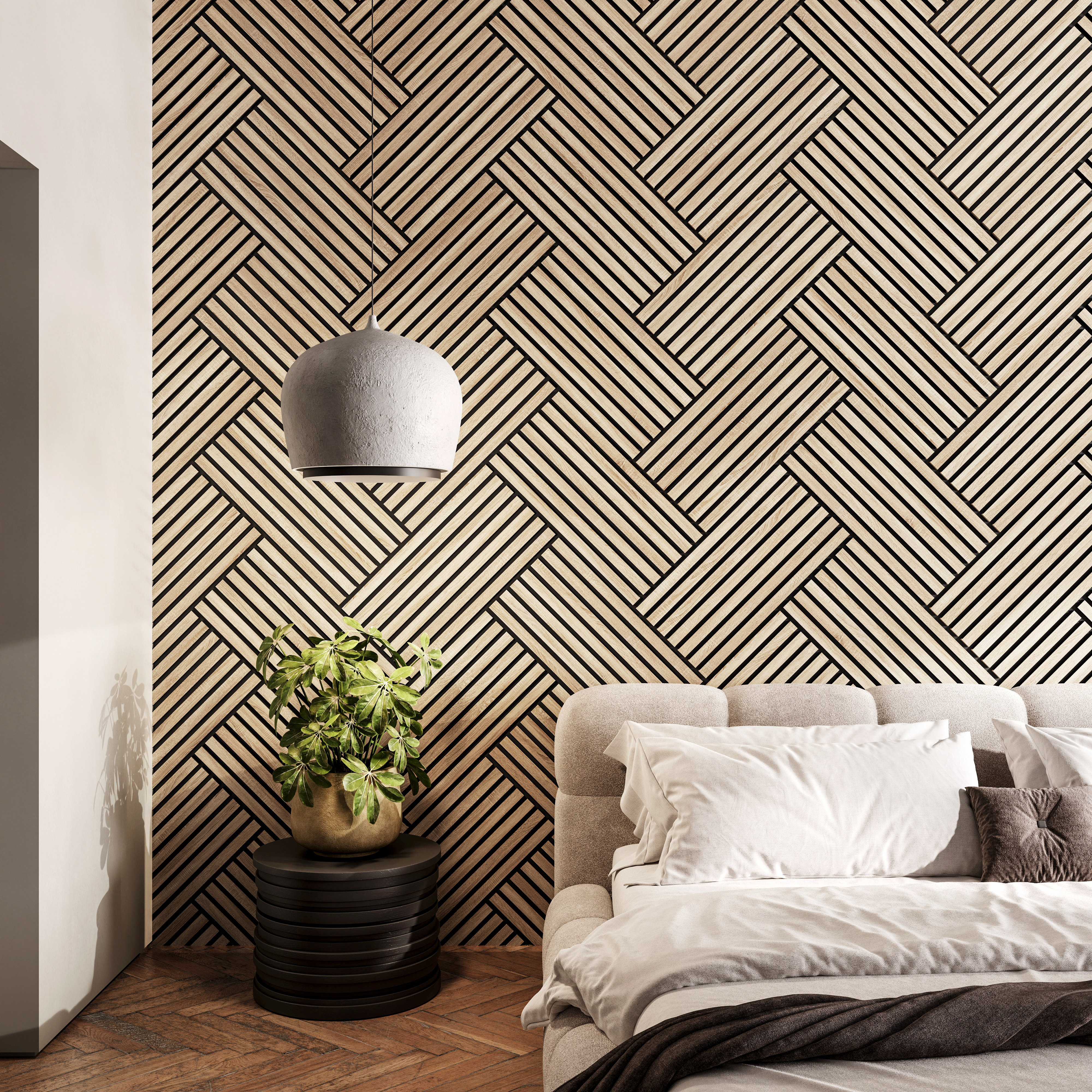 A panelek forgathatók és többféle elrendezésben kombinálhatók, így lehetőséget adnak egyedi minták és kreatív faldekorációk kialakítására. Legyen szó letisztult vízszintes vonalvezetésről vagy dinamikus, modern hatásról, az Ultracoustic Eco Tile minden térhez alkalmazkodik.